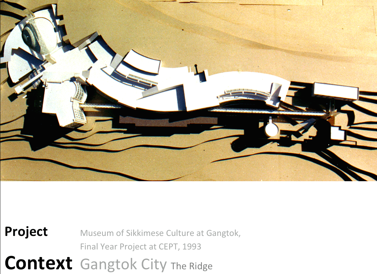 The seminar began with showing my final year project – the Museum of Sikkimese Culture that was almost entirely shaped by following the contours of the site. This set the tone for the rest of the talk – moving on to an urban scale – ‘Walkways and Allied Facilities at Namnang’ – a pedestrian walkway on a steep incline of Gangtok. A slum rehabilitation project also in Gangtok was followed by a Organic Farmers Market in Namchi. The final project was set in the urban setting of Ahmedabad where the context was defined by the network of streets. This led to a triangular plot thereby defining the form of the building to be triangular. The lecture was concluded with a manifesto for building in the hills – highlighting the best practices to be followed for design on a contoured site.