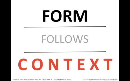 Talk / Seminar on ‘Form Follows Context’ – a look at architecture informed by the context through the projects of our office – Prashant Pradhan Architects in Gangtok.